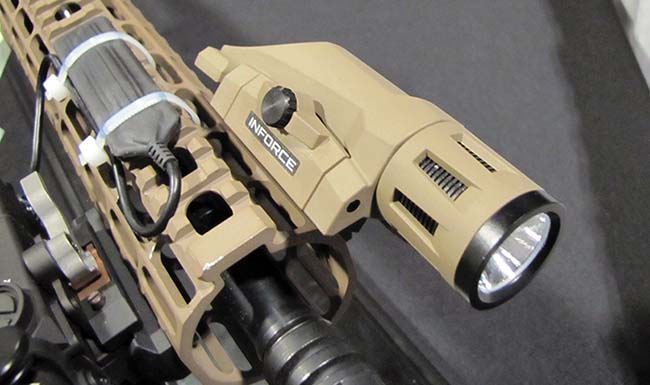 Boasting of their all-American heritage, Inforce from Rhode Island makes a complete line of pistol and rifle flashlights. Their W-06-2 model rifle flashlight is already in use by SOCOM and is waterproof to a depth of 66 feet (20 meters). Almost all Inforce lights have built-in mounts for acceptance on a Picatinny rail, with illumination levels from 200 lumens to 800 lumens. All Inforce products are built on a polymer frame to provide a lightweight—yet rugged—construction.