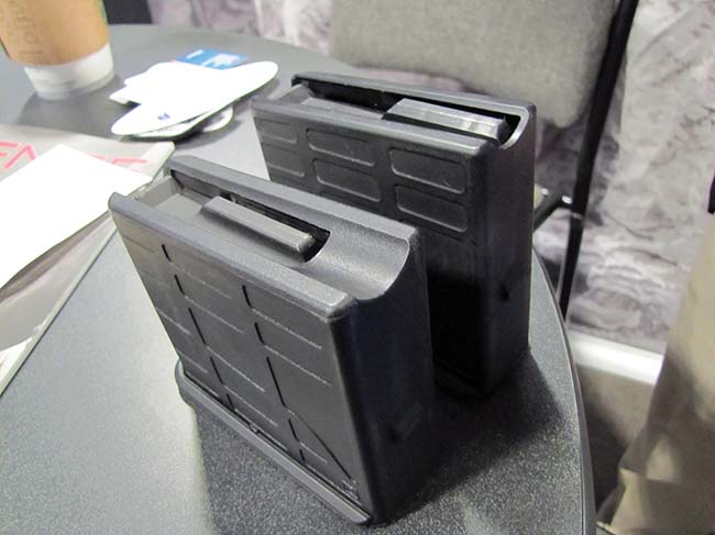 Each changeover kit comprises a barrel, bolt head and magazine. The magazine bodies are alike, but the followers are specific to the type of ammunition being used. To change caliber in the field, the operator switches out parts and brings the bolt forward to the locked position while the barrel is loose. At this point, the barrel retaining screws are socked in and headspace is set. Another interesting feature is the polymer bolt guide, which provides a smooth surface along which the bolt can glide.