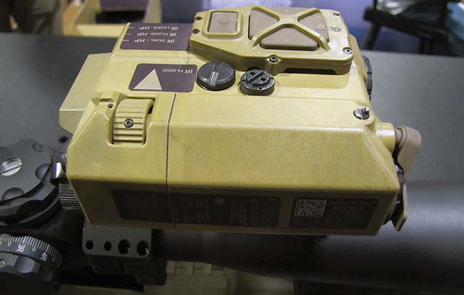 The Wilcox booth boasted the weapon-mounted RAPTAR-S. This system offers an integrated ballistic computer and sensor suite to plot target acquisition and give the aim point solution for the warfighter—all with the push of a button. The RAPTAR-S weighs less than 14 ounces (0.4kg) and can be used on weapons systems from 5.56mm to .50 cal. Using a 123A lithium battery, the system is capable of more than 7 hours of run time.