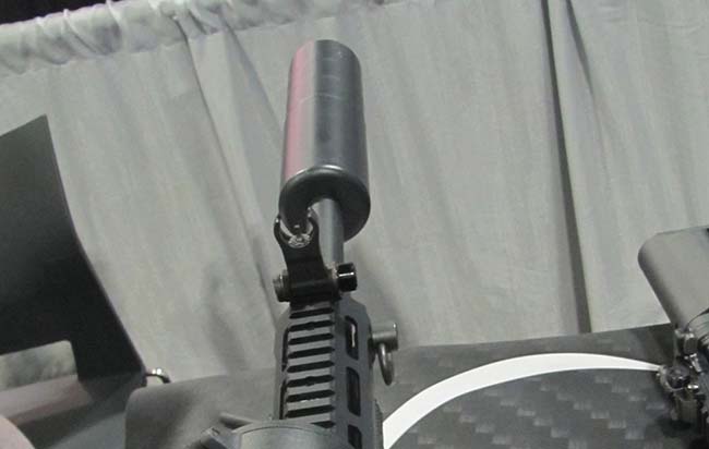 Big news from LMT is their machine gun suppressor technology, which has been obtained under license from Lawrence Livermore National Laboratory. It’s a totally new and different technology compared to traditional sound suppressors and proving to be highly effective. The suppressor can be used on machine guns, including the 7.62mm M240, but it was exhibited here on the LMT rifle adopted by New Zealand.
