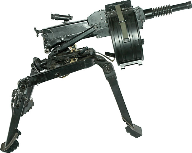 The newest heavy machine gun to spring from Mother Russia was the NSV, a 12.7x108mm machine gun that was tank mounted but adapted to infantry use with a tripod and buttstock. This high rate of fire machine gun is in use with North Korean units today, but is not made in North Korea to our knowledge.