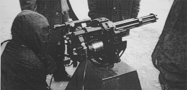 In 1995, an arms dealer sold 6 here-to-for unheard of “Miniguns” to a Southeast Asian country. These were made in North Korea, and are an indigenous design in 7.62x54R caliber using forward stripping on the links. The links have a built in “ramp” on them to facilitate the heavy rim of the cartridge in forward feed. We obtained a copy of an English language manual for the “Gun 2” but still have been unable to examine a sample of this. This is a basic Gatling design, electrically powered, and the barrels spin while firing.