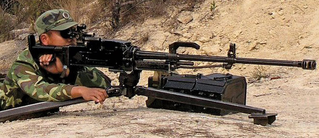 ABOVE: Chinese soldiers practicing with 12.7mm W85 HMG.