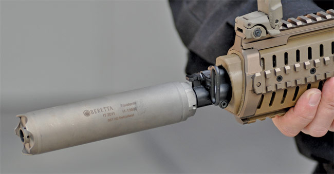 The first thing to do, in such a case, is to isolate the barrel from the polymer body. Beretta’s solution was to design and integrate in the handguard highly insulating ceramic inserts where the hot barrel could touch the firearm body.