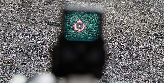 The Vortex UH-1 holographic reticle has a (1) MOA center dot, surrounded by a larger circle. There are hash marks at the 9:00, 12:00 and 3:00 positions for additional sighting reference and finally a small triangle in the 6:00 opening that is specifically designed to be a CQB sighting reference to account for bore-to-sight, off-set at ranges 7 yards and in. The Razor AMG UH-1 is designed to have a lower 1/3 co-witness with standard iron sights. Vortex has moved all the electronic components for the holographic sight into an enclosed and integrated base. The company calls this “Quantum Well Technology.” The Razor UH-1’s external surfaces are non-glare, and the lenses have anti-reflective coating. Another important and often overlooked advantage of the holographic sight is that the projected reticle is visible to only the operator.