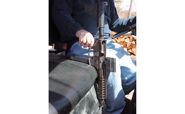 Many will question the utility of employing a pistol cartridge in a rifle-sized pattern weapon. Why not just use a rifle round? Some would argue that most engagements happen well within a 100-yard range, especially in a civilian setting, and that handling and reliability play more of a factor in quick, reactive engagements than specific caliber used. Also, less experienced shooters will find the lower recoil pulse (especially with the CMMG MkG) and muzzle blast of a shoulder-fired pistol caliber easier to manage, which often times will translate into better accuracy potential. Will a rifle hit with more authority than a 9mm? Yes; however, the advantage of carrying a handgun and pistol brace carbine using the same, easy-to-acquire and relatively inexpensive ammunition and magazines should not be underestimated. Not to delve off into worst case scenarios, but too many people are stocking up ammunition, food and weapons in these times of worry to totally discount the sentiment.