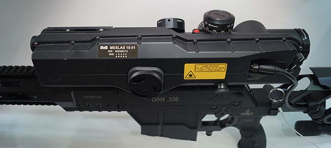 The Mepro Meslas by Meprolight is a sniper’s 10×40 sniper rifle scope and fire-control computer with a built-in laser rangefinder. The laser is operating in an eye-safe spectral range (invisible to night vision devices) and is effective to 2,000m. Mepro Meslas is also fully programmable by the sniper who can upload specific ballistics tables, wind tables and other information in accordance with the type of rifle and ammunition. When measuring distance the Mepro Meslas automatically calculates the ranged target and displays the correct aiming point in the scope’s field of view with automatic elevation correction. The Mepro Meslas has a communication port for remote operation and ballistic data update. The Mepro Meslas is a robust system, withstanding shock, vibration and extreme environmental conditions. It weighs 4.05 pounds. It has optional wind, elevation, humidity and axial sensors for further compensations. But this sensor package takes only the atmospheric data from the position of the shooter, so it does not replace the importance of the spotter.