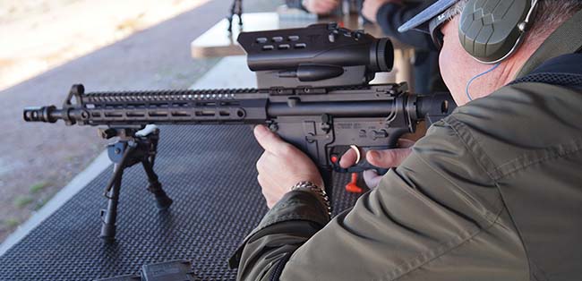 As soon as the sight is perfectly intersected with the designation point, the guided trigger is released (then pulling the trigger, this author got a perfect shot—awesome!). The fire control system won’t let mis-aim, jerk or jitter affect the shot. The sight has a digital display. The display shows the field of view, the target and vital pieces of data including range-to-target, target velocity, shot angle, compass heading, gun cant, battery status, Wi-Fi status, wind velocity and direction, kill zone size, ammunition type, temperature, barometric pressure and time of day.