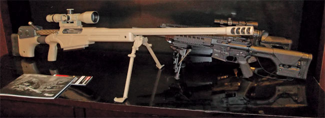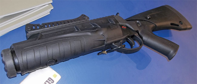 ATK had on display the new XM-25, the counter defilade target engagement (CDTE) system. The XM-29 is a 25mm grenade launcher, weighting 12 to 12.5 pounds, with a weight of 29.5 inches. The weapon uses a fully integrated optic sight with a day/night full solution target acquisition/fire control. The XMN25 enables the gunner to “program” the 25mm round fired through the launcher. The weapon comes with a 25mm in the chamber and a magazine with 4 additional projectiles. The current development ammunition includes high explosive air bursting and training, and soon to be fielded the armor piercing round. The next generation includes the blunt and air burst (less-than-lethal), and door breaching. It was indicated that five systems are now being tested in Afghanistan, and the weapons were due back from testing, but the troops refused to return them and are still using them in combat. An initial order for some 12,000 examples is expected in 2014.