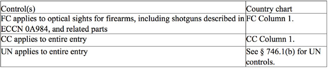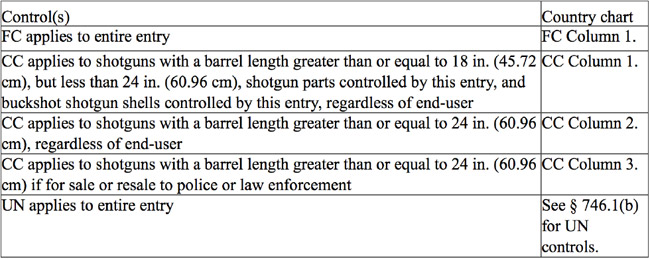 Additional review of classification 0A984 will note that reason for controls on shotguns are due to Crime Control (CC), Firearms Convention (FC) and United Nations (UN) purposes. Further examination shows that licensing requirements will vary, depending upon the barrel length of the shotgun in question.