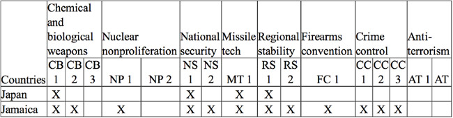 So far, this seems easy. Under the 0A987 heading, it appears that nearly every type of firearm optic is covered, and as such, the U.S. Department of Commerce should govern the export of firearm optics. This is not entirely accurate. Returning to the Country Control Chart, we again see that the export of some optics to Japan may occur without a Commerce Department export license, while Jamaica still requires a Commerce Department export license.