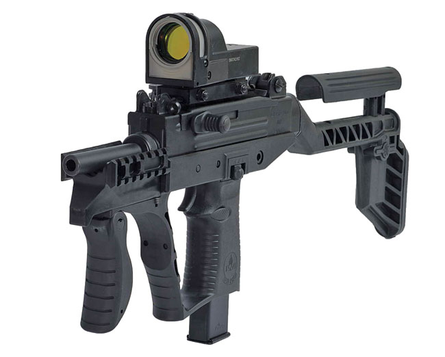 Ergonomically designed and easy to use by right or left-handed users, it offers closed bolt operation for maximum accuracy and safety. With many of its components made of advanced polymeric materials, the Uzi Pro’s features include Picatinny rails, ergonomic butt, built-in foldable assault handle and pistol-type magazine release button. It also provides a quick fitting suppressor, full auto and single shot and adjustable shoulder stock with mounted cheek rest.