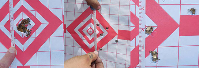 The C39V2 was expected to be more accurate, due to the bedding of the barrel in a milled receiver. In the first photo, the first group shows a group of less than 1.5 inches, at 50 meters. The second photo shows the 6000-round group opening up a bit to around 3 inches, and the final 12,000-round group is tightened to under 2 inches. This is not a significant degradation in accuracy.