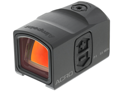 The new Acro P-1 is the first Aimpoint sight dedicated to riding the slide of a semi-automatic handgun. It is the only fully enclosed system in its category with a sealed optical channel and electronics protected from environmental elements such as rain, dust, and ice. The Acro is NVG compatible, submersible up to 82 feet and has over a year of constant-on use with one CR1225 battery. The ultra-clear sight picture and 3.5 MOA red dot allows for extremely fast target acquisition, making it the number one choice for pistol optics worldwide.