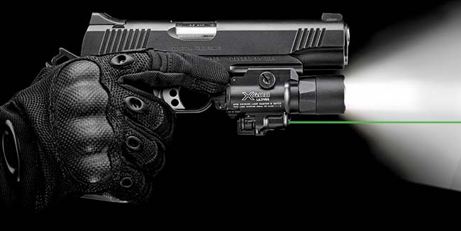 SureFire’s expanding family of X-Series WeaponLights has a new addition with the release of the X400-GN Ultra (X400U-A-GN). This latest X400 Ultra model features a high-visibility green-laser sight instead of the red-laser sight found on the best-selling original X400 Ultra (X400U-A-RD). In most other aspects, however – including light output, dimensions, weight, switching, and attachment options – the X400 Ultra with green laser remains identical to its red-laser counterpart. The green-laser version of the X400 Ultra is being offered to accommodate users who prefer a green dot on target over a red one. The color green is also the most visible color to the human eye, making it extremely detectable in most situations. In addition to being highly visible, the five-milliwatt (505 nanometer) green laser of this new X400 Ultra is generated by a green-laser diode, making it more reliable over a wider temperature range than double YAG green lasers on the market. Just like the original X400 Ultra, the green-laser version has an adjustment mechanism that uses Nylok screws that won’t back out from the effects of recoil, so its laser holds zero longer. Like all “Ultra” X-Series lights, it features a recoil-proof primary LED that delivers 500 lumens of white light focused through a TIR lens to create a versatile beam with significant reach and surround light. Power is supplied by two disposable 123A lithium batteries, which produce tactical-level output (enough to overwhelm an aggressor’s vision) for up to 1.5 hours. Activating any X-Series WeaponLight is achieved via an ambidextrous push/toggle switch located on the end cap. For additional control, without the need to alter your grip on the weapon, X-Series lights can be outfitted with optional SureFire DG grip switches on many popular pistol models or with SureFire XT pressure-pad tape switch on long guns. You can contact them at surefire.com.