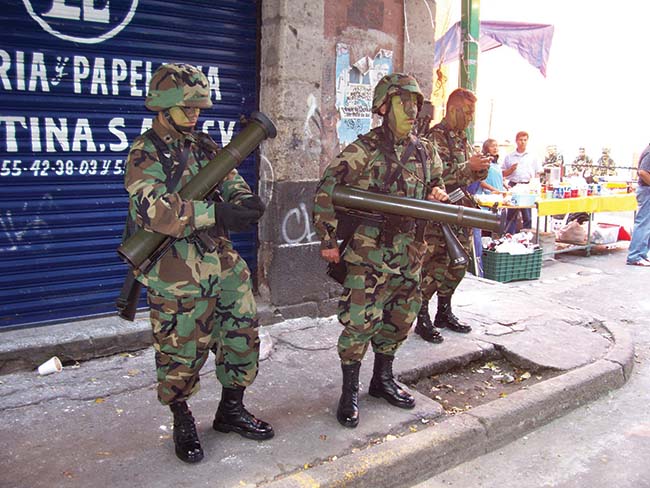 ABOVE: Mexican soldier atop of a Humvee with a RL-83 Blindicide. This is an obsolete AT weapon, but still applicable to the potential threats faced by Mexico. (J. Montes)