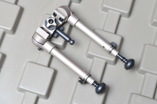 The AX PSR can clearly use any type of bipod that can be attached to a rail. In our case we have the factory bipod for the PSR, which is attached and released by simply depressing the release catch. This particular bipod can be attached at any point along the rail by simply unscrewing the two retaining screws. The bipod legs can be extended like that of a Harris BR bipod and either be used in a fixed position by tightening the star shaped device or free moving for uneven terrain. It is very wide at the base and extremely low allowing for great stability.