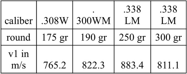 The following average speeds were taken at the shooting range of Vigevano: the main atmospherics were as follows: 54F (12.3°C), 74.3% humidity, pressure 1000 mb and elevation 116 m (380 feet).