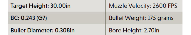 The first step is to change the zero on the ballistic software until Max Ordinate is as close as possible to 15 inches. Remember, Max Ordinate needs to be half the target size above the line of sight. Find the close zero to within 1 meter with a Max Ordinate not exceeding 15 inches. You must do this for your close zero and far zero.