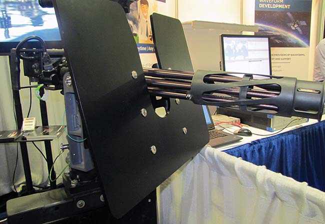 The Wilcox booth boasted the weapon-mounted RAPTAR-S. This system offers an integrated ballistic computer and sensor suite to plot target acquisition and give the aim point solution for the warfighter—all with the push of a button. The RAPTAR-S weighs less than 14 ounces (0.4kg) and can be used on weapons systems from 5.56mm to .50 cal. Using a 123A lithium battery, the system is capable of more than 7 hours of run time.