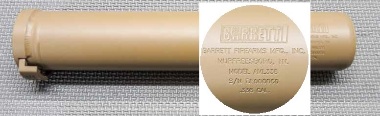 Barrett manufactures the AML338 suppressor out of a high-strength Titanium alloy. They use modern CNC machining and orbital welders to keep the hoop strength with the lowest amount of material. Precision bore alignment maintains accuracy, reduces point of impact shift and aids in flash reduction.
