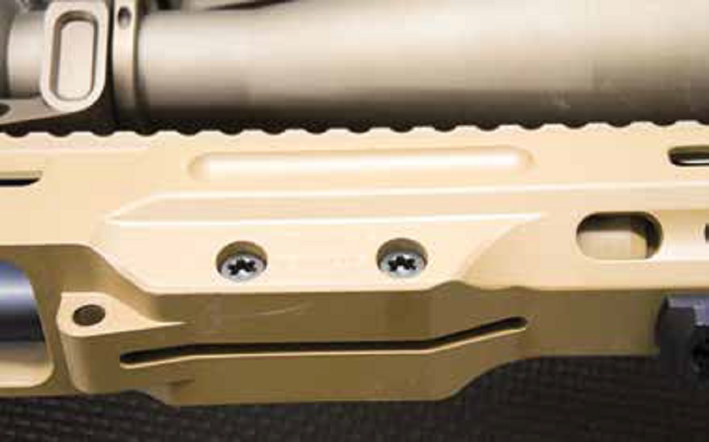 Starting after World War II, an alloy used by many in the aircraft industry is 7075 (a Japanese mix). It is an alloy of 90% Aluminum, 5.6% Zinc, 2.5% Magnesium, 1.6% Copper and 0.23% Chromium; some various tiny amounts of other metals are used as well. This lightweight, easily tempered and machined 7075 is ideal for use in firearms, and 6061 (6xxx—Silicon as main additive, not Zinc) and 7075 are alloys favored in the “AR” industry. Almost every written description of an AR will say “7075 T6 Aluminum” as if it was magical transition of knowledge to a reader. Actually, in the 5.56mm AR platforms, the real benefits of 7075 don’t fully show up. However, Barrett’s engineers are smart enough to know those other attributes solve almost every issue the MRAD faced, and in particular, the split collet nature of the barrel clamping. More on that later.