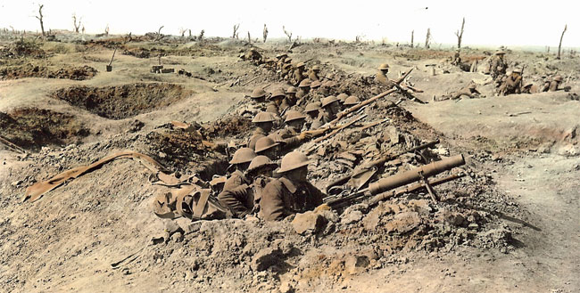 As manufacturing increased both in England and the United States, the British Army greatly increased the number of guns put into action. A British battalion had sixteen platoons in four companies and by 1918 each platoon had two Lewis guns with another four at Battalion Headquarters for anti-aircraft defense.