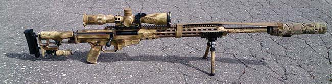 The M2010 sniper rifle chambered for .300 Winchester Magnum, provides good performance out to about 1,200m.